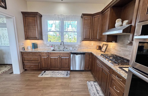 Nestled in the peaceful hills of Demossville, Kentucky, just twenty minutes from the Ark Encounter and steps from the Bourbon Trail. The Owl's Nest is a modern retreat for up to twenty guests. This new-build, four-bedroom home boasts king and queen beds in three bedrooms, an enormous walk-in rain shower, plus a spacious upstairs bunk room sleeping up to nine. The open-concept flows to a stunning porch view and private hot tub, perfect for unwinding after adventures. Sleep sound, wake inspired.
