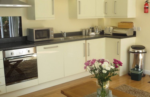 El apartamento de la planta baja tiene acceso a una zona de patio con asientos. Cocina / salón / comedor de planta abierta equipada con sofá de cuero, televisión de pantalla plana y reproductor de Blu-ray y mesa de comedor de vidrio contemporánea. Dormitorio doble separado con cama superking de 6 pies y baño con ducha y calentador de toallas. Hay pisos de madera de roble con calefacción por suelo radiante. La cocina está equipada con unidades contemporáneas brillantes y modernas y electrodomésticos de calidad tales como una cocina, vitrocerámica, microondas, lavadora y lavavajillas. Se proporcionan vajilla blanca de calidad, cristalería y todos los utensilios. Situado en una calle privada, la zona es muy tranquila, rodeada de paseos rurales, un campo de golf y campos, pero con acceso inmediato a la carretera de circunvalación principal de Oxford y a 10 minutos en autobús del centro.
