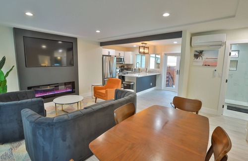Los grandes armarios pueden acomodar toda su ropa, sin calambres, así como sus zapatos, sus recuerdos y bolsas de compras. El salón es increíblemente cómodo y espacioso, así como la mesa del comedor; Conecte sus dispositivos a la red Wi-Fi doméstica, revise el correo electrónico, planifique su viaje y trabaje desde su casa de vacaciones. Cuando necesite descansar después de explorar el hermoso San Diego, encienda el A / C y el televisor de 60 pulgadas en la sala de estar y disfrute de una de las más de 300 opciones de canales disponibles para usted.