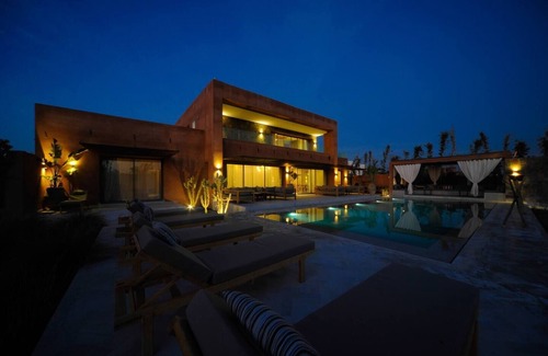 Este 7 Dormitorios Villa proporciona alojamiento con Internet, Cocina, Estacionamiento, por su conveniencia. Este Villa cuenta con muchas comodidades para los huéspedes que desean quedarse durante unos días, un fin de semana o probablemente unas vacaciones más largas con la familia, amigos o grupo. Este Villa es menos que 2 KM de Oulad Hassoune, y ofrece a los visitantes la oportunidad de explorarlo. La renta Villa posee 7 Dormitorios y 8 Baños para hacerte sentir como en casa.