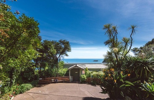 La Pequeña Isla de la Barrera es visible en el horizonte, las islas de los "Ruidos" y "Tiri Tiri Matangi" están a la izquierda, la Isla de Nani a la derecha y en primer plano Palm Beach está muy cerca con el sonido del mar siempre presente.
