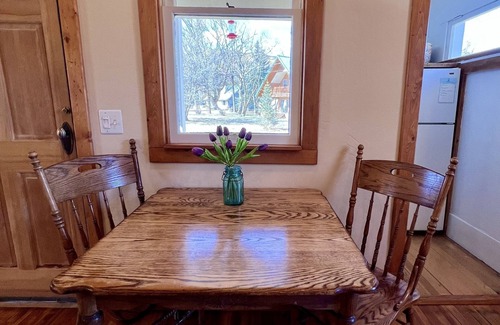 Hermosa casa de campo totalmente restaurada de más de 100 años en un entorno campestre en unas pocas hectáreas. Una de las casas originales en Paonia. Aislamiento rural por excelencia con un fácil paseo a la ciudad. Grandes árboles y patio, dulce porche delantero, puertas empotradas, pisos de madera, habitaciones de buen tamaño con aire acondicionado y mucho aire fresco y sol. A 1 cuadra del río y de la biblioteca Paonia, a 3 cuadras del centro de la ciudad y de un amplio camino de entrada con mucho estacionamiento.