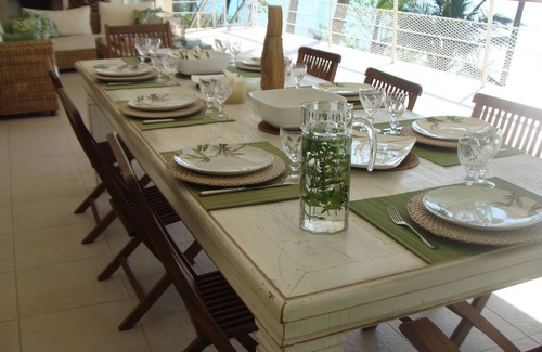 Casa dos Coqueiros da Ilha es una casa grande que hace honor a su nombre, ya que está rodeada de muchos cocoteros en todo su jardín que, por la noche, iluminados, hacen una hermosa composición con la piscina. ¡La casa es muy espaciosa, bien ventilada, soleada y tiene una vista impresionante! En la entrada, ya se puede ver el mar, ya que, en toda la habitación, hay una gran puerta de vidrio (16 m) que separa la habitación de un gran balcón que sigue toda la longitud de la habitación.