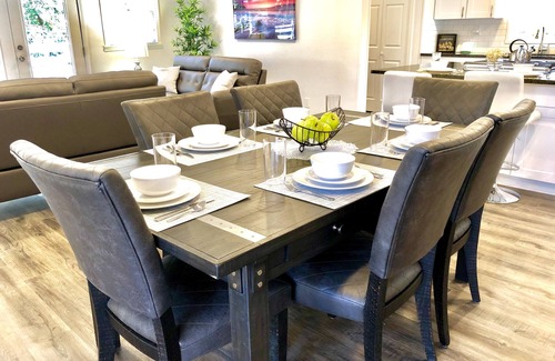 Todas las habitaciones incluyen camas cómodas con ropa de cama y 1 juego de sábanas limpias para cada cama, una mesita de noche, una lámpara de mesita de noche, una cómoda y / o armario para guardar su ropa durante su estadía. Se proporcionan toallas de baño y paños limpios (1 por huésped), así como toallas de mano en cada baño. La cocina completa está equipada con todos los platos, ollas y sartenes básicos, cubiertos y utensilios. Los electrodomésticos de cocina incluyen microondas, tetera, cafetera eléctrica estándar, etc. (NO se incluyen artículos de despensa o condimentos debido a las Regulaciones de Alimentos y Medicamentos). Hay cómodos sofás, mesa y sillas de comedor, y más. Hay 3 televisores inteligentes con cable básico (1 en la sala de estar, 1 en el dormitorio principal, 1 en el dormitorio de la reina), así como 1 DVR y 1 reproductor de DVD en la propiedad. Se ofrece conexión Wi-Fi gratuita e Internet de alta velocidad, así como un área de oficina con escritorio, silla de oficina y lámpara. Incluye lavadora y secadora, plancha, tabla de planchar y 1 secador de pelo. Se proporciona un suministro de inicio LIMITADO de bolsas de basura, jabón para lavar platos, detergente para lavavajillas, toallas de papel, papel higiénico, jabón, champú y gel de baño, vainas de lavandería, sábanas para la secadora y toallitas desinfectantes. La parrilla de gas para barbacoa tiene un tanque de propano y herramientas para barbacoa. El patio privado con sus características es perfecto para el entretenimiento al aire libre.