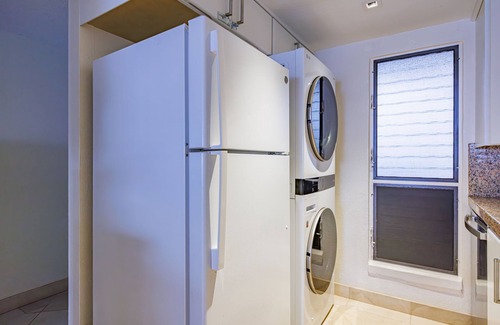 Aprovecha para preparar una comida casera: dispones de horno, placa de cocina y frigorífico, además de cafetera y tetera, hervidor eléctrico y máquina de hielo. Además, dispone de una bañera de hidromasaje, junto con toallas, champú y jabón. Y gracias a la lavadora y la secadora, podrás viajar con poco equipaje. Otras comodidades incluyen ropa de cama, una tabla de planchar y aire acondicionado.