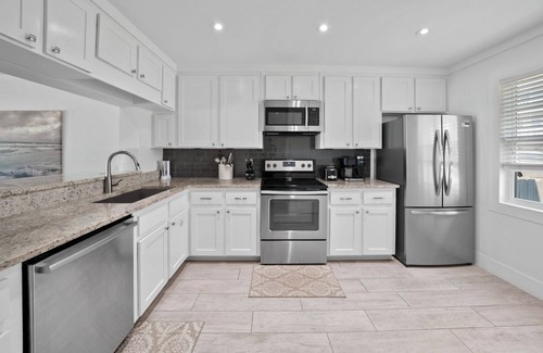 Esta casa adosada frente al golfo de 2 pisos ofrece mucho espacio para la familia. El primer piso ofrece una sala de estar abierta con sofá cama, cocina, comedor y medio baño. Para mayor comodidad hay una lavadora y secadora. Disfrute de sentarse y observar el golfo en el patio del primer piso con asientos.