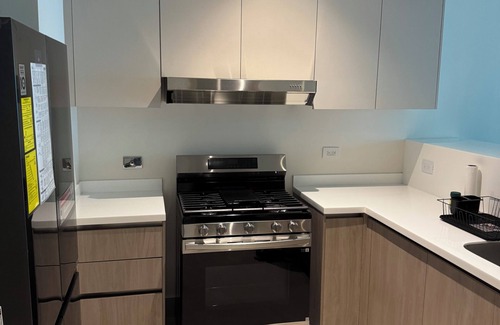 Feel free to prepare a home-cooked meal with the oven, stovetop, and microwave. Bathroom amenities include a hair dryer, towels, and toilet paper. And because there's a washer and dryer, you can go a bit lighter on your packing. Other amenities include bed sheets, an ironing board, and air conditioning.