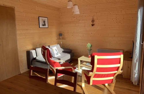 Cálido fondo de chalet de 5Om2 cerca de las pistas en la parte superior del complejo. Lado del día: sala de estar con cocina (cafetera, lavavajillas, horno, encimera de gas, raclette) con sofá cama con vistas a la terraza con hermosas vistas sin obstáculos de las montañas.