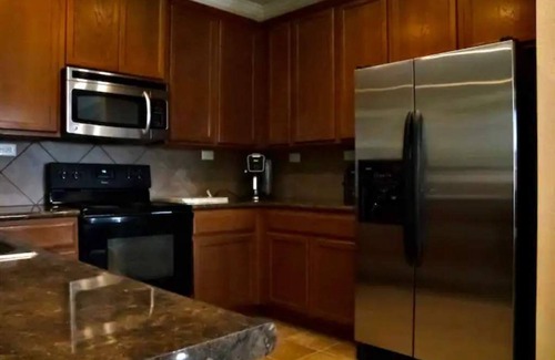 Este alojamiento de 4 dormitorios y 2.5 baños cuenta con una sala de estar, un comedor, chimenea y aire acondicionado. El cuarto de baño incluye toallas, papel higiénico y jabón. La cocina está equipada con horno, placa de cocina y frigorífico, además de cafetera y tetera, máquina de hielo y microondas. Podrás viajar con poco equipaje, porque tendrás una lavadora y una secadora a tu disposición.