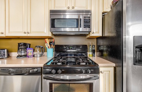 Al instalarte en este alojamiento de 2 dormitorios y 1.5 baños, encontrarás una sala de estar y escritorio. El cuarto de baño incluye un secador de pelo y toallas. La cocina está equipada con horno, placa de cocina y frigorífico, además de cafetera y tetera, máquina de hielo y microondas. Y no tendrás que llevarte ropa de más, porque podrás aprovechar la lavadora y la secadora.