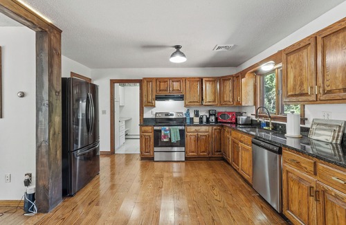 Al instalarte en este alojamiento de 5 dormitorios y 2.5 baños, encontrarás una sala de estar, un comedor, aire acondicionado y escritorio. El cuarto de baño incluye un secador de pelo, toallas y papel higiénico. La cocina está equipada con horno, placa de cocina y frigorífico, además de cafetera y tetera, hervidor eléctrico y microondas. Y como podrás aprovechar la lavadora y la secadora, no te hará falta llevar mucho equipaje.