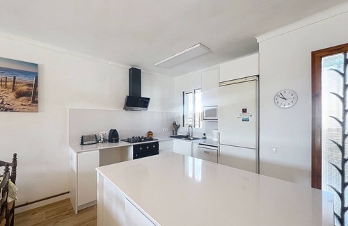 En la planta baja se encuentra la sala de estar, la cocina, 2 dormitorios y un baño. La cocina está equipada con frigorífico, microondas, horno, congelador, lavavajillas, cubertería, utensilios de cocina y cafetera nespresso.