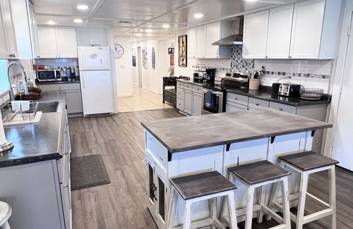 Este alojamiento de 5 dormitorios y 3 baños cuenta con una sala de estar, una zona para barbacoas y aire acondicionado. La cocina está equipada con horno, placa de cocina y frigorífico, además de cafetera y tetera, microondas y utensilios de cocina. Y como podrás aprovechar la lavadora y la secadora, no te hará falta llevar mucho equipaje.