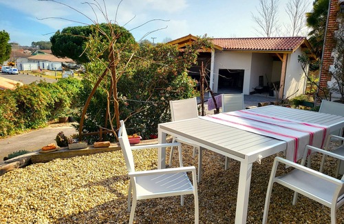 sala de estar con sofá de dos plazas, TV de pantalla plana, conexión a internet a través de la caja con naranja, un dormitorio con una cama de 140 y dos literas 90, un cuarto de baño con cabina de ducha, secador de pelo, lavadora cómoda , un aseo, una despensa con espacio de almacenamiento en bicicleta o tabla, terraza con persiana llevado, muebles de jardín, plancha, aparcamiento privado con espacio verde.