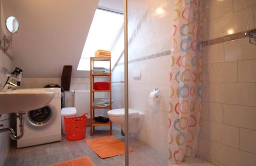 Puede esperar nuestro apartamento en el piso superior en aproximadamente 48 metros cuadrados para hasta 5 personas. Cama extra posible para un 3. Niño o Cuna posible. Hay una acogedora sala de estar con un televisor, una mesa de comedor y una nueva cocina. Dos habitaciones separadas (1x cama doble, 1x literas) para un sueño reparador. El acogedor baño con plato de ducha, lavadora, tocador y aseo completa la oferta del apartamento. Una terraza privada está disponible en la casa.