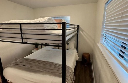 Welcome to our pet-friendly, family-friendly 3-bedroom home, perfectly located near Congress Ave. This stylish retreat offers free parking and a unique cowboy pool for a refreshing dip. Inside, you'll find comfortable living spaces, a fully equipped kitchen, and cozy bedrooms. Enjoy outdoor dining on the patio, ideal for al fresco meals and gatherings. Just minutes from Austin’s best attractions, dining, and nightlife, our home is your perfect base for an unforgettable stay.