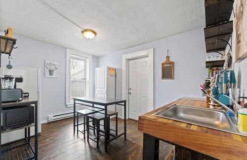 Guests have access to shared laundry facilities in the basement and off-street parking just steps away from the apartment. Enjoy a peaceful and quiet environment with enforced quiet hours from 10 PM to 6 AM to ensure a relaxing stay.