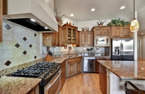 Disfruta el momento de tu vida en la gran sala abierta y la hermosa cocina gourmet con gabinetes de aliso nudoso personalizados y encimeras de granito. Salga a un gran patio cubierto que conduce a un increíble patio trasero y una piscina climatizada estilo centro turístico. Sumérjase en la relajante bañera de hidromasaje con vistas a la ciudad.