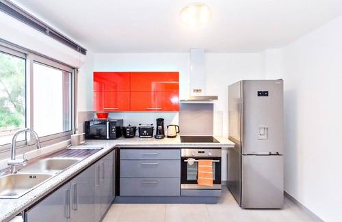 - 1 cocina grande totalmente equipada (nevera, horno, lavavajillas, fogones, ...).