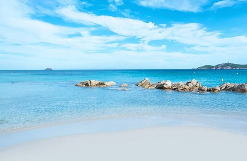 This traditional Mediterranean beach house is surrounded by trees, and a little wooden gate in the garden leads directly onto Pinarello beach. Pinarello Beach House is ideal for a family seeking the mix of relaxation and adventure of sunbathing and watersports on one of the safest bays in Corsica.