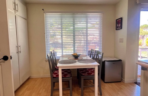 Relax w/ the whole family at this peaceful place to stay in the Pinole Valley Hills. Great indoor/outdoor living w/3 spacious bedrooms, fully stocked kitchen, roomy living room & family room w/ access to yard w/ patio & outdoor dining &lounge areas. Walking trails w/ Bay views right up the street. Centrally located-approximately Thirty minute drive/25 miles from San Francisco, Napa Valley, & Sonoma. Convenient to freeway & shopping center down the hill w/Trader Joe’s, Peet’s, Starbucks & more. Comfortable furnishings in this two story home. Enter home up one step to living area. Once inside the home enjoy living room and dining room and open kitchen with eating area, 1/2 bath, laundry area and family room with smart tv and access to backyard with outdoor dining, lounging areas, BBQ, and garden. Upstairs are 3 bedrooms all with full size beds. Newly remodeled full bath with tub/shower. Walking hill trails in the neighborhood.