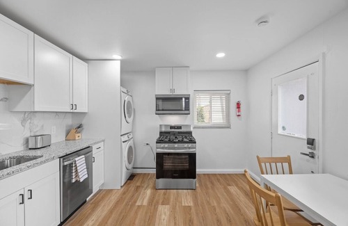 Prepara una comida casera en la cocina, equipada con horno, placa de cocina y frigorífico, además de cafetera y tetera, microondas y utensilios de cocina. El cuarto de baño incluye un secador de pelo y toallas. Podrás viajar con poco equipaje, porque tendrás una lavadora y una secadora a tu disposición. Otras comodidades incluyen ropa de cama, una tabla de planchar, aire acondicionado y calefacción.