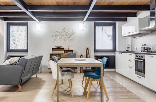 El Loft Ponte Milvio Luxury se encuentra en una posición estratégica en un área prestigiosa con transporte público, taxis y tranvías, cerca de los monumentos y atracciones de Roma, pero sin sufrir la confusión de las áreas circundantes atestadas de turistas y donde no se puede vivir. por ejemplo Campo de Fiori, Piazza Navona, Panteón ect ... Ubicado sobre el restaurante Voy y Dal Tappezziere y frente al conveniente estacionamiento, el "Estacionamiento ROMA" está completamente renovado con buen gusto con una superficie de aproximadamente 86 metros cuadrados en 2 niveles: en la entrada del primer piso con sala de estar, sofá y comedor con chimenea. Televisor plano y maravillosa cocina abierta, en el segundo piso, 2 habitaciones dobles con colchones viscoelásticos, TV de pantalla plana y 1 baño fantástico. El apartamento tiene acabados con materiales de calidad, ventanas de doble acristalamiento y aire acondicionado insonorizado en todas partes, sistema de domótica Wi-Fi Wi-Fi ultrarrápido y 3 ventanas con control remoto Velux y techo panorámico para una vista y un ambiente único. En el corazón de la vida nocturna romana y cerca de instalaciones públicas y empresas privadas, es el lugar ideal para turistas y hombres de negocios de alto nivel.