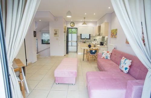Nuestra casita adosada es parte de un complejo de 3 casitas. Se encuentra en un lugar privilegiado de Porto Rafti, con vistas panorámicas, entorno natural y tranquilidad. A 5 minutos a pie se encuentra la maravillosa playa de arena de Panorama y a 5 minutos en coche, se encuentra la larga playa de arena abierta de Avlaki Porto Rafti, donde también podemos encontrar muchas cafeterías, sombrillas y tumbonas.