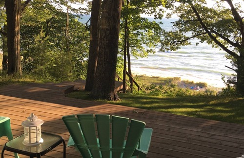 Oakmont es un retiro corporativo privado y una casa de vacaciones personalizada que cuenta con 4 espaciosas habitaciones, 2 baños completos, una nueva renovación de cocina personalizada de 50k, techos de 9 ', gran terraza espaciosa con vista al lago Michigan junto con 80' de playa privada de arena blanca. Disfrute del agua dulce del lago Michigan todos los días y de las espectaculares puestas de sol cada noche desde la playa, la terraza o el hogar. Ropa de cama, toallas, sillas de playa, sombrillas, kayak. Duerme hasta 10 invitados.