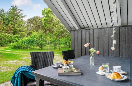 En la idílica Lodbjerg Hede, al norte de Søndervig, esta encantadora casa de vacaciones está situada en una gran parcela natural. La casa impresiona por su diseño de planta abierta y un interior luminoso y acogedor que crea un ambiente acogedor. Aquí podrá disfrutar de veladas en la cocina bien equipada, divertidas tardes de juegos de mesa y horas de relax frente a la crepitante estufa de leña en los días más fríos del otoño.