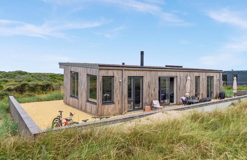 Preciosa casa de vacaciones con decoración escandinava contemporánea en medio del paisaje de dunas de Jammer Bay.