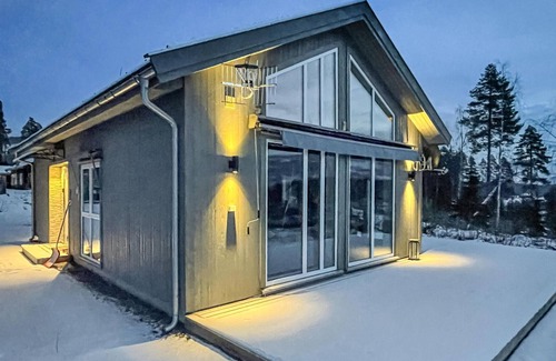 Bienvenido a esta estupenda casa de vacaciones, situada a sólo unos 400 m de la zona de baño y el puerto deportivo de Kvitsand. Siéntase como en casa nada más llegar y disfrute del bonito alojamiento amueblado, que le conquistará con sus grandes ventanales que le darán una aireada y buena sensación de espacio. Póngase cómodo con sus seres queridos junto a la chimenea por la noche y relájese cocinando, jugando y viendo películas juntos. En verano, puedes empezar tus días de vacaciones con un desayuno ligero en la terraza y disfrutar de las vistas al lago.