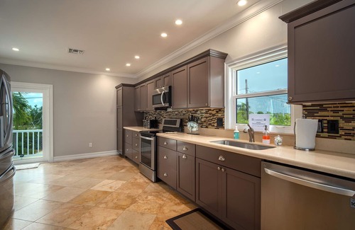 La cocina actualizada está totalmente equipada, y estaremos encantados de organizar la entrega de comestibles antes de su llegada (solicite detalles al administrador de la propiedad). Hay una vinoteca y una pequeña máquina de hielo para su conveniencia para preparar cócteles.Cada una de las tres habitaciones tiene su propio cuarto de baño y amplio armario / espacio de almacenamiento. También hay un televisor de pantalla plana (AT&T TV y Roku) en cada habitación, si necesita un descanso del entretenimiento de la Madre Naturaleza. Es posible que pase uno de los Key Deer en peligro de extinción de la isla mientras te das un chapuzón en la piscina recientemente renovada de la casa.