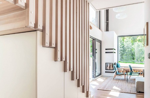Casa 5 estancias 112 m2 en 2 plantas. Con mobiliario moderno y de buen gusto: salón-comedor con 1 sofá-cama y chimenea. Salida al jardín, a la terraza. 1 dorm. con 2 camas. Cocina (horno, lavavajillas, 4 placas de vitrocerámica) con mesa de comedor. Planta superior: (escaleras sin barandilla) altillo abierto con 1 posibilidad para dormir. 1 dorm. con 1 cama doble. 1 dorm. con 2 camas. 2 ducha/WC. Calefacción, calefacción de gas. Terraza 20 m2. Muebles de terraza, tumbonas (6), rincón para sentarse. Vista al valle y al bosque. El alojamiento dispone de: Internet (Wifi). Plaza de aparcamiento junto a la casa. A tener en cuenta: detector de humo. En lugar de un dormitorio cerrado, algunos espacios para dormir están situados en una zona diáfana (galería, alcoba, etc.).