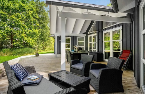 Grande, hermosa casa en una de las mejores zonas de Norddjursland. La zona también incluye la mejor playa de baño. La casa está equipada de forma óptima para dos familias. Cada uno puede dormir en su propia área, juntos tienen la gran cocina-salón. En un dormitorio hay una cama individual, una mesita de noche y un colchón. Delante está la terraza parcialmente cubierta. Una parcela natural rodea la casa, donde encontrará un lugar para hacer hogueras. Aquí podrá hornear pan o preparar deliciosas salchichas a la parrilla. La casa es muy luminosa y acogedora e ideal para unas vacaciones en las que sentirse bien.