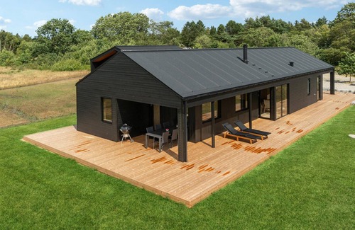 Pase unas vacaciones relajantes en esta moderna casa de vacaciones. En el interior, podrá reunirse en las habitaciones con paredes de madera clara para jugar, cocinar o relajarse. El gran salón sirve como punto central de reunión familiar, que con su hermosa cocina no sólo complacerá a los cocineros aficionados. Mientras unos disfrutan de las veladas con una crepitante chimenea y una copa de vino, otros pueden divertirse jugando en la sala de actividades. Tres lados de la casa están rodeados por la espaciosa terraza, donde podrán hacer juntos una barbacoa, tomar el sol o ver a sus hijos jugar en el césped.