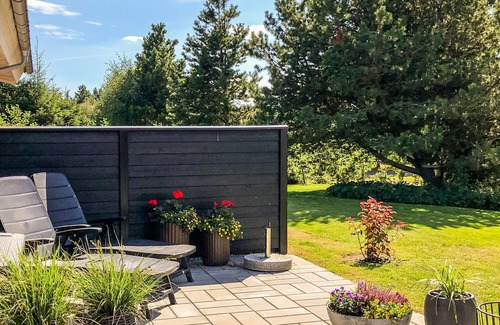 En una hermosa zona de casas de vacaciones, no lejos de la ciudad portuaria de Hals, esta casa luminosa y atractiva le da la bienvenida. Es el lugar perfecto para hacer una pausa en su ajetreada vida cotidiana y disfrutar de las ventajas de un ambiente acogedor. La sala de estar de planta abierta, con techos altos, grandes ventanas panorámicas y un mobiliario bueno y cuidado, le promete mucho tiempo para cocinar juntos, jugar a juegos en la mesa de comedor o ver películas en el sofá. Una bañera de hidromasaje está disponible para relajantes horas de bienestar.