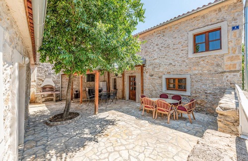 Esta fantástica casa de piedra está situada en los verdes alrededores de un pueblo ecológico en una parcela vallada y consta de dos casas. La propiedad ha sido rejuvenecida y brilla por dentro y por fuera. La casa más pequeña consta de cocina-salón, baño y dormitorio, mientras que la casa más grande tiene cocina-salón, tres dormitorios y dos baños. Fuera del patio, a unos 5 m, hay una piscina privada. Dentro de la ecoaldea, hacia los extensos campos, hay un gran cenador que se comparte. La ciudad más cercana es Biodgrad, conocida por sus dos puertos deportivos. También merece la pena visitar el casco antiguo de Zadar y el parque natural del lago Vrana.