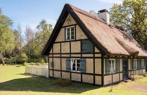 Llegue y entre en esta acogedora casa con entramado de madera. La magia y el encanto de la casa no sólo se caracterizan por su construcción, mobiliario y decoración, sino también por su historia. La casa se construyó originalmente en el siglo XIX, pero se trasladó a esta nueva ubicación en Ellinge Lyng en 1966. La casa se reconstruyó ladrillo a ladrillo, lo que apareció en un programa danés de televisión inmobiliario sobre la casa con tejado de paja. Disfrute de las dos plantas, que cuentan con acogedoras habitaciones y una chimenea abierta y estufa de leña para mantener toda la casa caliente en los días más fríos. Relájese en el sofá, cocine en la cocina y cene en la mesa de comedor con vistas al jardín.
