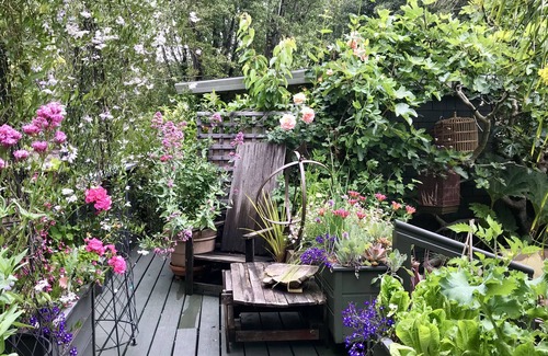 La cocina está totalmente equipada, con electrodomésticos de alta gama (estufa y microondas Viking, lavadora, secadora y lavaplatos Miele, y refrigerador Liebherr) y una encantadora mesa de desayuno con dos sillas con vista al jardín. Fuera de la cocina hay un rincón encantador con una cama futón tamaño queen perfecta para leer, así como una bicicleta estática.