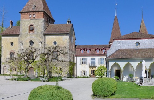 Münchenwiler a 3 km de Murten: Castillo "Münchenwiler", histórico, rodeado de árboles y prados. Lugar tranquilo, soleado en una colina, en el campo. Comunitario: parque con flores y árboles, terreno con hierba, bonito jardín para relajarse, patio, estanque natural. Terraza-jardín, terraza, muebles de jardín. En el inmueble: recepción, restaurante, sala de desayuno, sala de descanso con TV, billar, futbolín, sala para guardar bicicleta, calefacción central, bicicletas a disposición (extra). Cambio de sábanas (suplemento extra). Cambio de toallas (suplemento extra). Posibilidad de limpieza (extra). Posibilidad: desayuno y media pensión (extra). Aparcamiento en el mismo terreno. Tienda 3 km, supermercado 2 km, parada de autobús 250 m, estación de tren "Murten" 3 km, piscina 3 km. Campo de golf (18 hoyos) 7 km, escuela de surf 4 km, tenis 2.6 km, minigolf 3 km, rutas de senderismo desde la casa, caminos para bicicletas 1 m. Atracciones en los alrededores: Historische Stadt Murten, Tropenparadies Papillorama, Grotten von Mont Vully, Römermuseum Avenches. Lagos conocidos fácilmente accesibles: Murtensee, Neuenburgersee. Zona de senderismo Vully, Jura. A tener en cuenta: coche recomendable, ascensor s.lo hasta el 2° piso.
