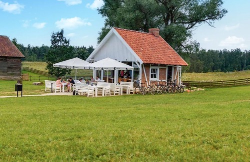 Compartirá los amplios terrenos con otros alojamientos, donde a sus hijos les encantará descubrir el gran parque infantil y la piscina. Apenas tendrá que salir de la propiedad, ya que, además de estas comodidades, también encontrará un pequeño restaurante que sirve productos locales o podrá reunirse alrededor de la hoguera por la noche después de un partido de voleibol.