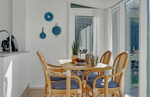 Puede planificar sus próximas vacaciones en una propiedad natural cerca del mar en el norte de Jutlandia. Encontrará mobiliario agradablemente moderno en esta luminosa casa adosada esquinera con invernadero y balcón, así como un jardín dividido con refugio.