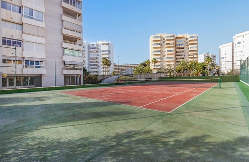 Disfrute de este bonito piso de vacaciones con piscina comunitaria, parque infantil y numerosas pistas deportivas.
