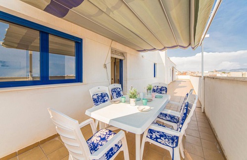 Cómodo piso de vacaciones con terraza en la azotea y vistas al mar.