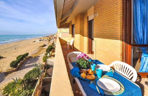 Luminoso piso panorámico en el segundo piso de un pequeño edificio directamente en la playa de Torvajanica.
