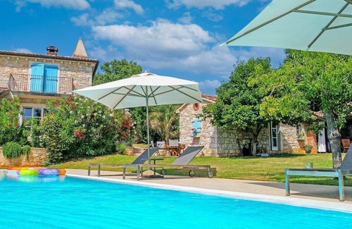 Casa semiadosada "Glicinia". En el aldea Labinci, a 13 km del centro de Poreč, a 800 m del centro de Kaštelir, a 12 km del centro de Novigrad, a 7 km del mar, en el campo. Comunitario: terreno 18'000 m2 con césped y árboles, piscina rectangular (16 x 8 m, 120 - 180 cm de profundidad, Disponible por temporada: 01.May. - 01.Oct.) con escalera interior. Ducha exterior, tenis de mesa, terraza, muebles de jardín, parque infantil (tobogán, columpio, cajón de arena), mantenimiento de la piscina a través del propietario/jardinero. En el inmueble: acceso a internet, trampolín. Aparcamiento en el mismo terreno. Tienda 50 m, supermercado 800 m, restaurante 50 m, parada autobús 6 km, playa rocosa 7 km. Puerto para yates 12 km, parque infantil 30 m.