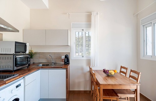 El Apartamento Los Naranjos 3 forma parte de un complejo vacacional de apartamentos situado en las afueras de Vejer de La Frontera. Está pensado para que en él se alojen hasta 5 personas, ya que dispone de un salón-comedor con una cocina pequeña pero bien equipada , 2 dormitorios (uno con cama de matrimonio y una cama individual y otro con cama de matrimonio) y un cuarto de baño con aseo separado. Entre los servicios adicionales se incluyen aire acondicionado, WLAN, TV y barbacoa. Además, dispone de una cuna, una silla alta y juguetes para los huéspedes más pequeños de la casa. El apartamento cuenta también con una terraza privada con una zona de estar donde podrás relajarte mientras disfrutas de las vistas de Vejer de la Frontera, así como con una zona exterior compartida con una gran piscina compartida con tumbonas y sombrillas que se ilumina por la noche y un pequeño jardín. El centro histórico de Vejer de la Frontera está a 9 minutos en coche o a 5 km, mientras que el supermercado más cercano está a 7 minutos conduciendo, en las afueras de la ciudad. La playa de Zahora está a 14 km, equivalente a un trayecto de 18 minutos en coche.