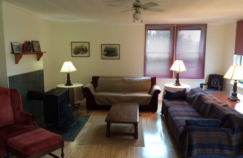 5 dormitorios, 4 camas de matrimonio, 4 dobles 12 plazas, 2 baños, cocina completa, comedor, sala de estar, televisión por cable. Parrilla al aire libre, proyectado en el porche. Se sienta en una granja de 400 acres con el río de la rata en un lado, bosque nacional en el otro con el rastro del safari de la nieve de 100 millas adyacente.