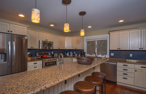 Cree una vida de recuerdos que anhelará repetir cuando se quede en la excepcional casa conocida como Lakeside Story. Esta casa principal de Deep Creek ofrece 6 dormitorios / 5. 5 baños y 3 niveles de espacio de vida expansivos, lo que la convierte en la opción perfecta para la escapada multifamiliar o familiar extendida. Después de un día de esquí en el cercano Wisp Resort, pase tiempo con sus amigos mientras se mantiene caliente frente a la enorme chimenea de piedra en la Gran Sala. Los pisos de madera noble relucientes, los techos altos de las catedrales y las ventanas abiertas y brillantes cobran vida y harán que esta sea la habitación favorita de todos. Un verdadero sueño para un chef gourmet, su cocina ofrece electrodomésticos de acero inoxidable (¡incluyendo un horno doble!), hermosas encimeras de granito y un amplio espacio para moverse. Pase las tardes perezosas descansando en la gran cubierta envolvente mientras respira el aire fresco de la montaña o las estrellas de la noche mientras se relaja en el jacuzzi al aire libre. Comparta historias y haga s'mores alrededor de la fogata al aire libre o dé un pequeño paseo hasta el muelle de su comunidad, donde puede nadar y jugar en el agua o atracar su bote. Ubicado en la prominente comunidad de Waterfront Greens, usted y sus invitados se deleitarán con las comodidades del complejo, que incluyen el campo de golf de 3 pares, las canchas de tenis comunitarias, el estanque de captura y liberación y la colina para trineos en invierno. Este barrio tranquilo es ideal para los niños que quieren traer sus bicicletas o para pasear por la tarde con la familia. ¡Usted y su familia se merecen lo mejor y Lakeside Story lo es! ¡Llama hoy para crear tu nueva tradición de Deep Creek! Para su comodidad, esta casa ofrece wifi gratis.
